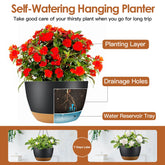 *Sturdy & Durable Material*:The hanging planter with self-watering tray is constructed by durable thickened plastic material,anti-fading,corrosion-resistant,suitable for indoor and outdoor use,like patio,garden,windowsill,porch,balcony,etc.. Ideal housewarming gift for your horticulture lovers friends.