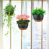 *4Pcs Minimalist Style Hanging Planters*:Our hanging planter with the diameter of 9.64in,fit for repotting medium and large plants and flowers,like ferns,succulent,philodendrons,ivy,herbs and other plants. Classic dark grey color and minimalist appearance make our eye-catching hanging pots perfectly match various decoration styles for both indoor and outdoor.